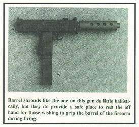 Barrel shrouds make it possible to hold a hot barrel during firing (above).