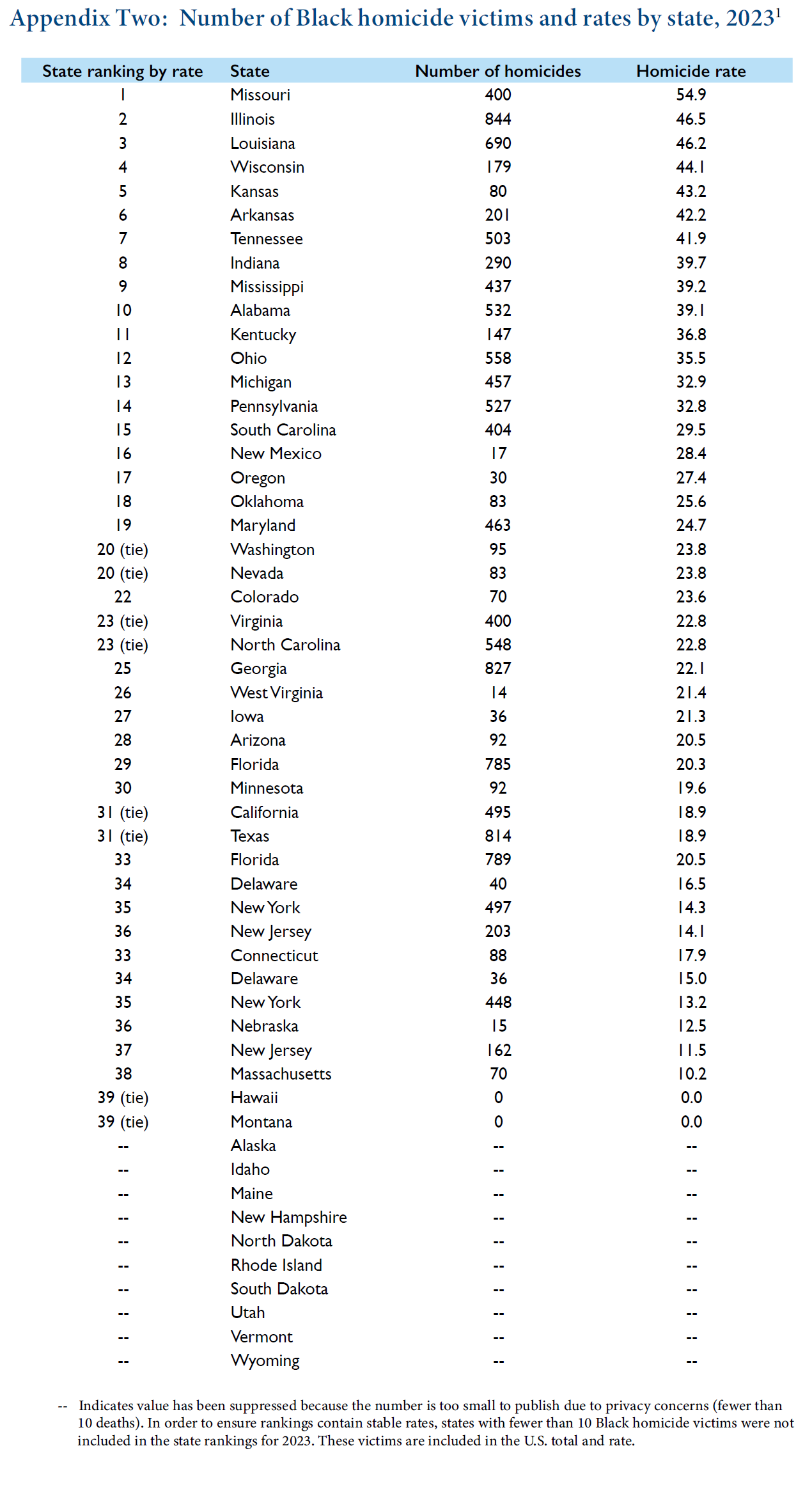 Appendix Two: Number of Black Homicide Victims and Rates by State, 2023