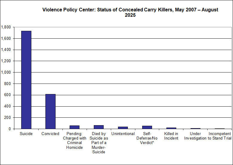 *Concealed Carry Killers does not include the small number of incidents that are eventually determined to involve self-defense or where no verdict is reached at trial. All such incidents are removed from the database’s ongoing totals.