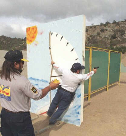 In a typical "course of fire," contestants begin with a rapid draw from a holster, and are then timed as they run, crawl, and sometimes climb through a shoot-�em-up scenario, all while firing at human-scaled head-and-torso targets. Human targets intended to be shot are often referred to as "bad guys." "No-shoot" targets are often called "hostages." The highest scores are awarded to "head shots" and "heart shots" because of their heightened lethality, with points awarded for speed of shooting as much as for accuracy.